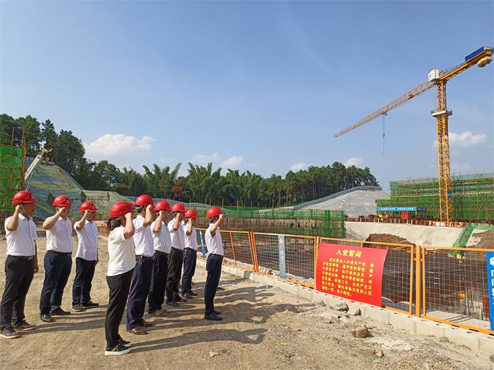 “我志愿加入中國共產(chǎn)黨,擁護黨的綱領,遵守黨的章程,履行黨員義務,執(zhí)行黨的決定……”項目建設施工現(xiàn)場,黨員們面對莊嚴的黨旗,重溫了入黨誓詞。