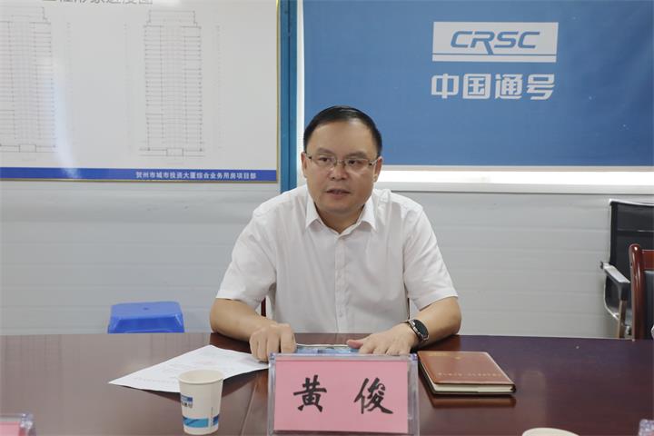 調(diào)研中,黃俊認真聽取了城投大廈項目建設(shè)、銷售、融資化債等情況匯報,詳細了解當(dāng)前項目在推進及銷售等方面存在的問題,并提出指導(dǎo)性意見。黃俊指出,城投大廈項目是賀州市重點項目,是推進集團市場化轉(zhuǎn)型的重要項目,當(dāng)前項目推進處于關(guān)鍵環(huán)節(jié),各參建單位要進一步提高政治站位,將城投大廈打造成賀州市地標(biāo)性建筑。