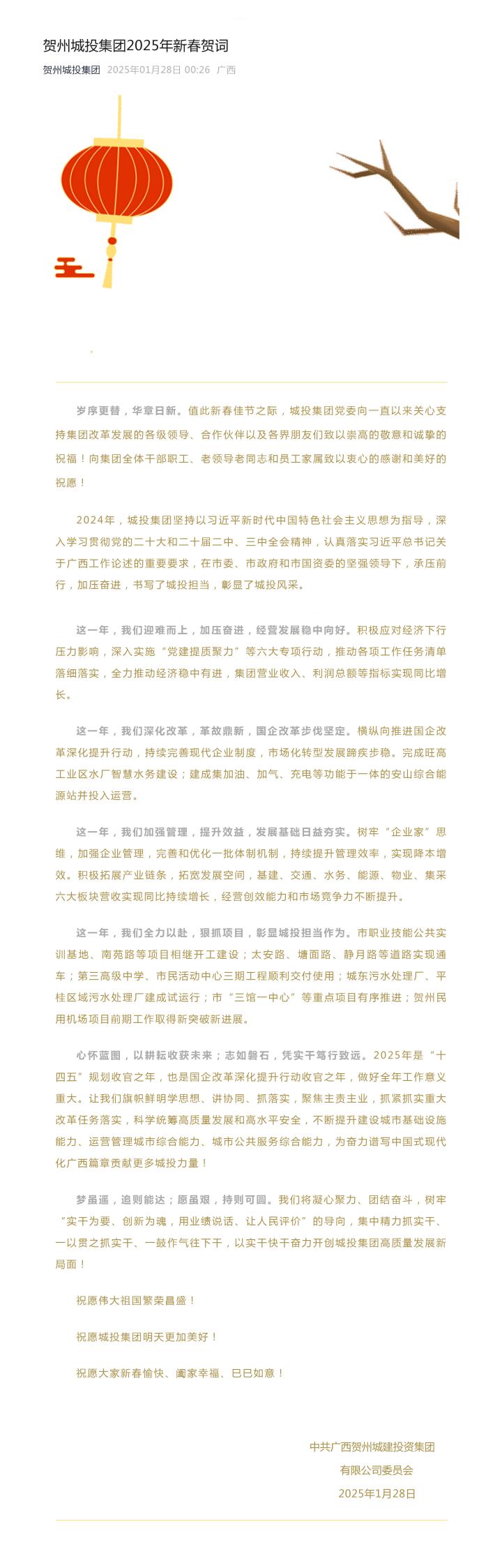 賀州城投集團(tuán)2025年新春賀詞
